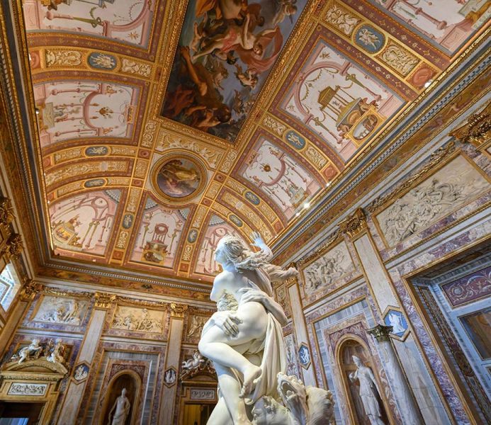 Œuvres de Bernini, Caravaggio, Titien, sculptures antiques, jardins