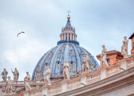 La coupole de la basilique Saint-Pierre est l’un des chefs-d’œuvre de la Renaissance, un symbole imposant de la foi et du génie architectural qui domine le panorama de Rome.